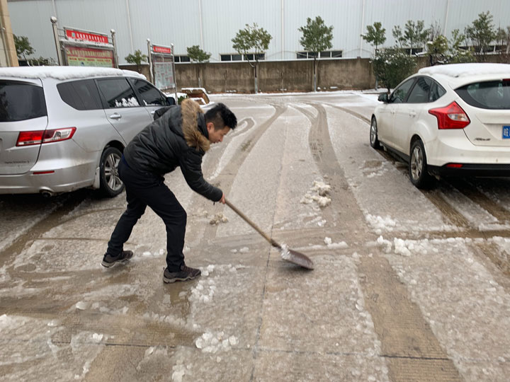 公司組織員工開展積雪清掃活動,大家不畏嚴寒,積極參加,紛紛拿起鐵鍬和掃帚,開始清掃廠區內的積雪。整個掃雪過程中,大家配合默契,干的熱火朝天,不亦樂乎,忙碌的身影構成了一道亮麗的風景線。