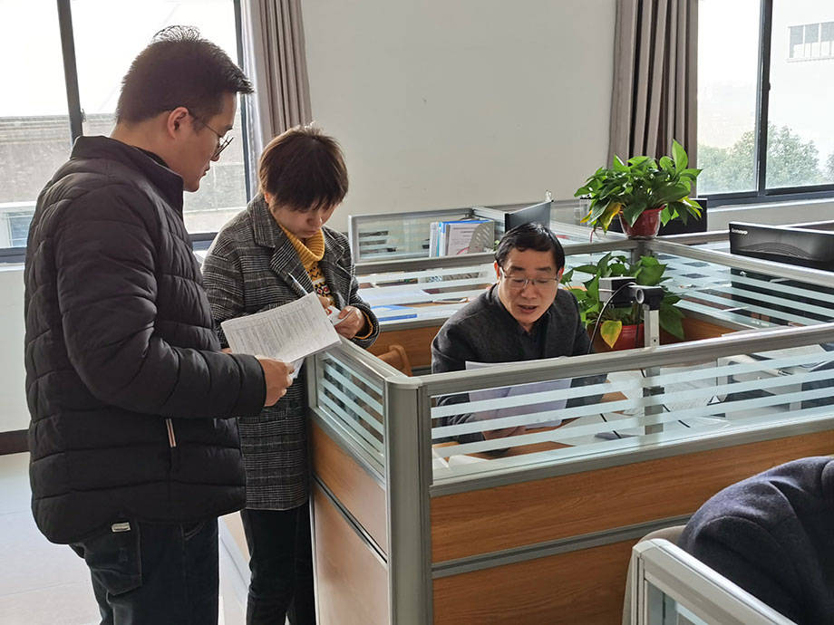 段書(shū)記和質(zhì)量部金龍認(rèn)真檢查銷售部。