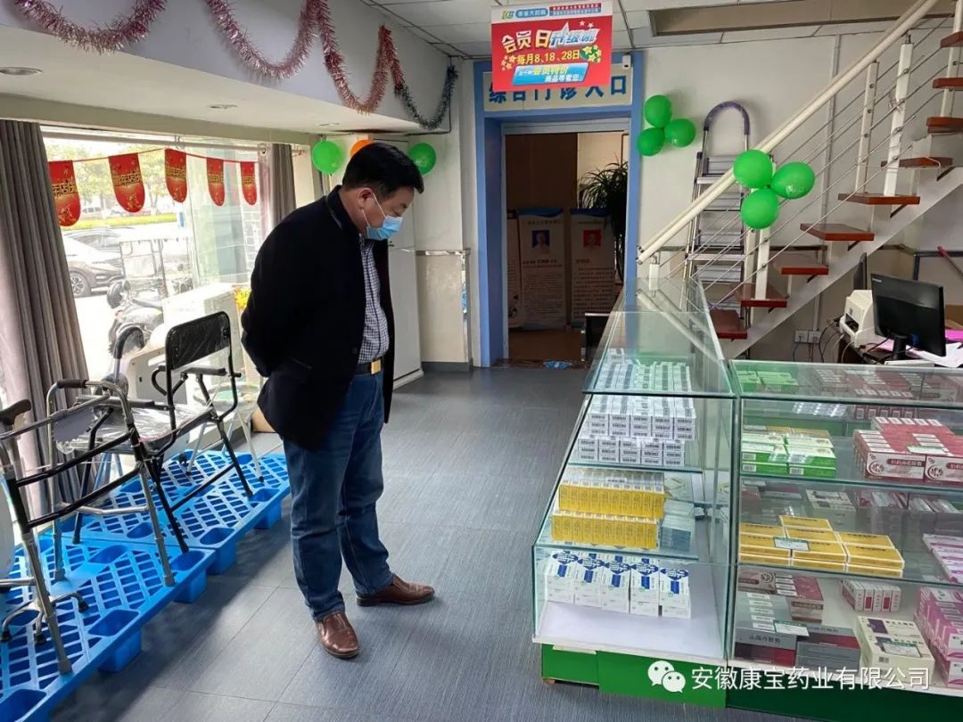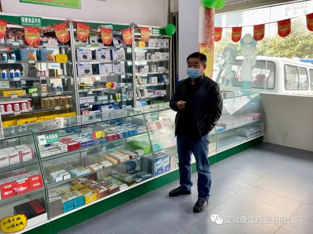 店慶當(dāng)日,康寶藥業(yè)董事長(zhǎng)朱興林及公司領(lǐng)導(dǎo)親臨龍湖路店指導(dǎo)工作。